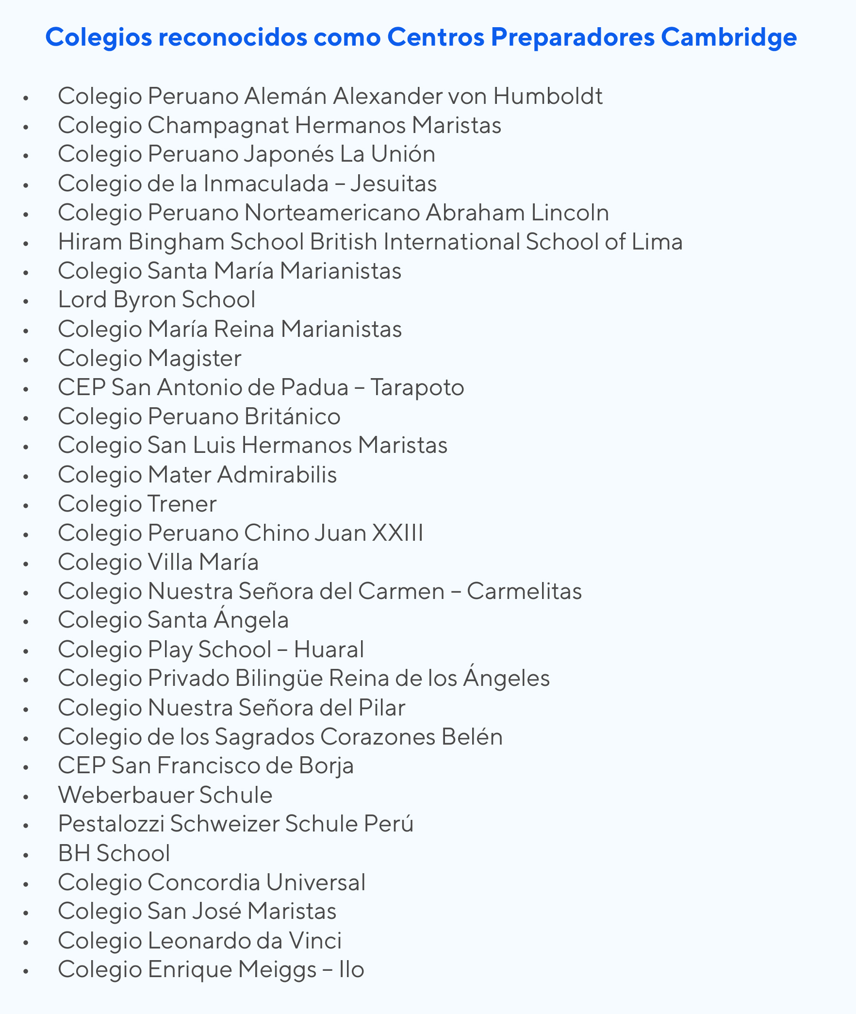 Idiomas PUCP reconoce a 30 colegios como Centros Preparadores Cambridge por su excelencia en la preparación de exámenes internacionales